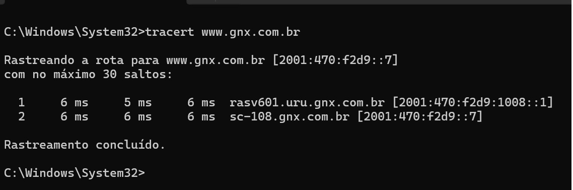 Tracert no Window Vista (IPV6)